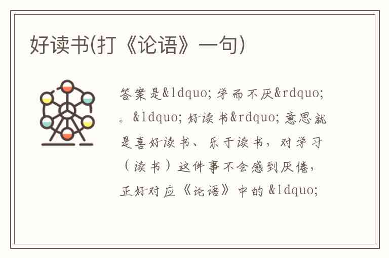 答案是“学而不厌”。“好读书”意思就是喜好读书、乐于读书,对学习(读书)这件事不会感到厌倦,正好对应《论语》中的 “学而不厌” 。