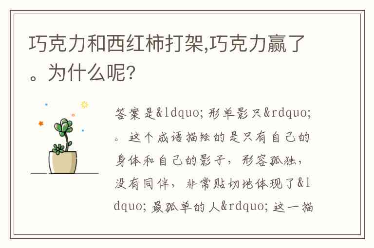 巧克力和西红柿打架,巧克力赢了。为什么呢?