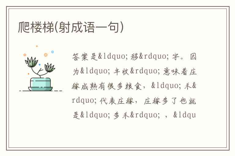 答案是“移”字。因为“丰收”意味着庄稼成熟有很多粮食,“禾”代表庄稼,庄稼多了也就是“多禾” ,“禾”与“多”组合起来就是“移”字。