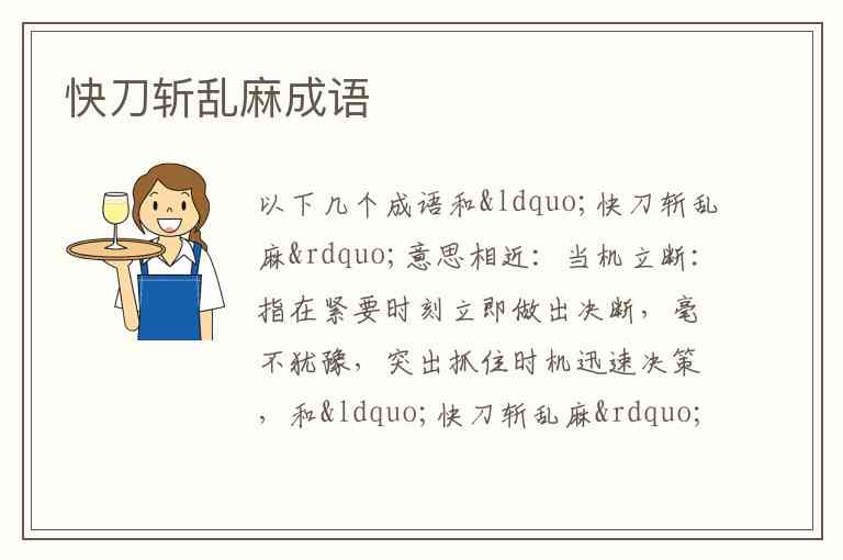 当机立断:指在紧要时刻立即做出决断,毫不犹豫,突出抓住时机迅速决策,和“快刀斩乱麻”果断处理问题的意思相符。