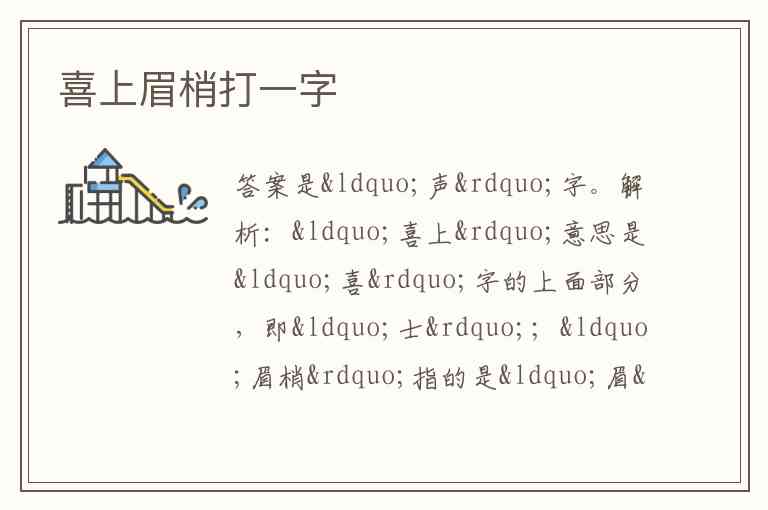 解析:“喜上”意思是“喜”字的上面部分,即“士”;“眉梢”指的是“眉”字的最上面部分,也就是“尸”。“士”和“眉”字上部组合起来就是“声”字 。
