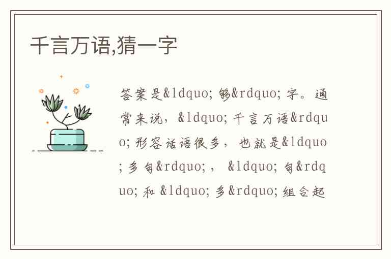 通常来说,“千言万语”形容话语很多,也就是“多句”, “句”和 “多”组合起来就是“够”字。