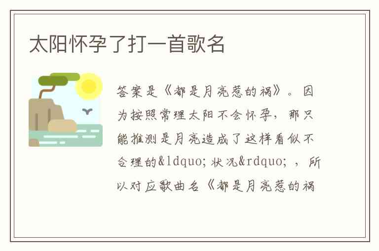 答案是《都是月亮惹的祸》。因为按照常理太阳不会怀孕,那只能推测是月亮造成了这样看似不合理的“状况” ,所以对应歌曲名《都是月亮惹的祸 》 。