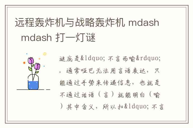 远程轰炸机与战略轰炸机 mdash mdash 打一灯谜