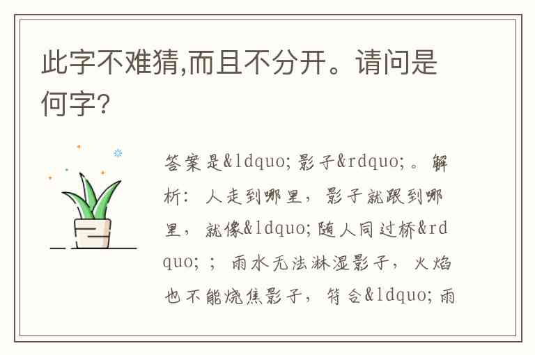 解析:人走到哪里,影子就跟到哪里,就像“随人同过桥” ;雨水无法淋湿影子,火焰也不能烧焦影子,符合“雨淋它不湿,火烧它不焦”的描述,所以这个自然物是影子。