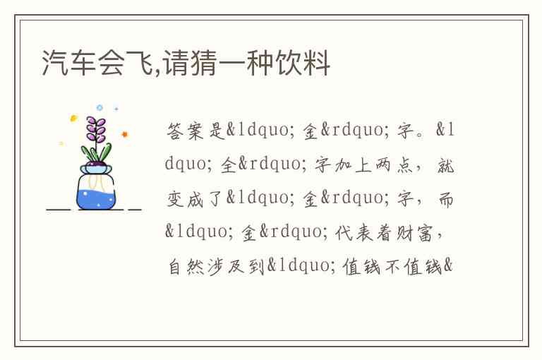 答案是“金”字。“全”字加上两点,就变成了“金”字,而“金”代表着财富,自然涉及到“值钱不值钱”的概念啦。