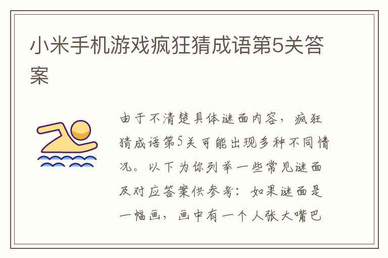 由于不清楚具体谜面内容,疯狂猜成语第5关可能出现多种不同情况。以下为你列举一些常见谜面及对应答案供参考: