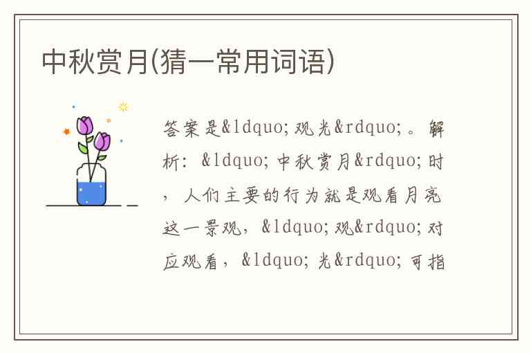 解析:“中秋赏月”时,人们主要的行为就是观看月亮这一景观,“观”对应观看,“光”可指代月光,所以扣“观光”这个常用词语 。