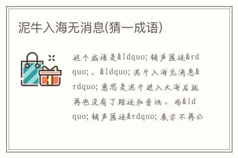 “泥牛入海无消息”意思是泥牛进入大海后就再也没有了踪迹和音讯 ,而“销声匿迹”表示不再公开讲话,不再出头露面,形容隐藏起来或不公开出现,正好与谜面所表达的消失得毫无踪迹之意相契合。