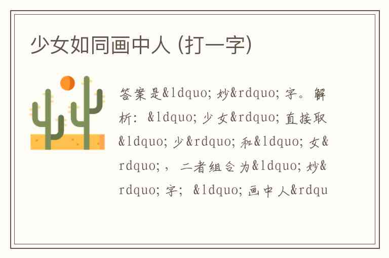 少女如同画中人 (打一字)