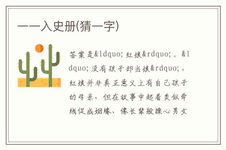 一一入史册(猜一字)