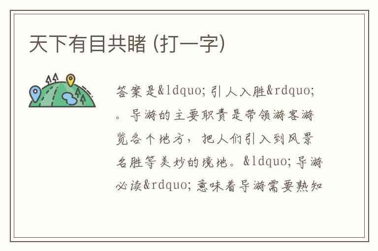 导游的主要职责是带领游客游览各个地方,把人们引入到风景名胜等美妙的境地。“导游必读”意味着导游需要熟知如何引导游客进入美妙的胜境,所以扣“引人入胜”这一成语 。