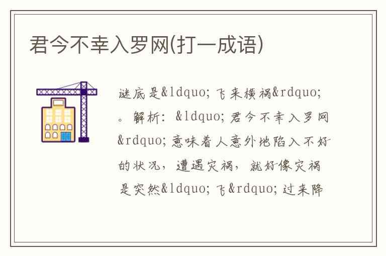 解析:“君今不幸入罗网”意味着人意外地陷入不好的状况,遭遇灾祸,就好像灾祸是突然“飞”过来降临的一样 ,所以扣“飞来横祸”这个成语。