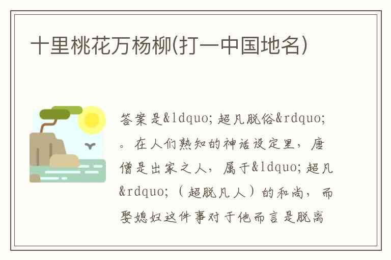 在人们熟知的神话设定里,唐僧是出家之人,属于“超凡”(超脱凡人)的和尚,而娶媳妇这件事对于他而言是脱离了原本出家人的“脱俗”状态 ,所以用“超凡脱俗”来形容很贴切。