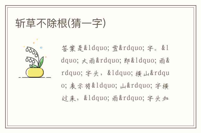 斩草不除根(猜一字)