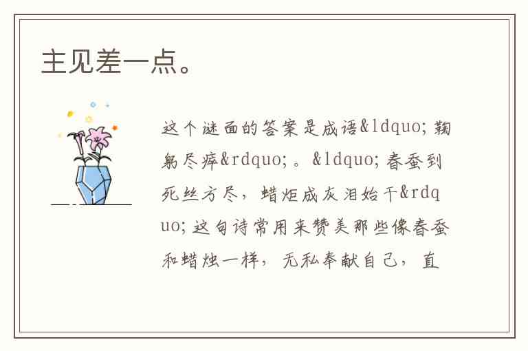 这个谜面的答案是成语“鞠躬尽瘁”。