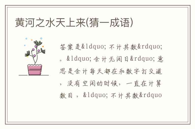 黄河之水天上来(猜一成语)