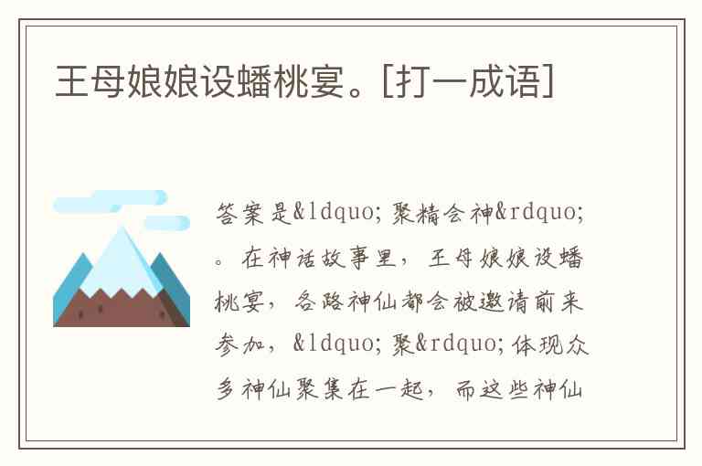 在神话故事里,王母娘娘设蟠桃宴,各路神仙都会被邀请前来参加,“聚”体现众多神仙聚集在一起,而这些神仙都是有神通、精神超凡的存在,所以是“聚精会神” 。