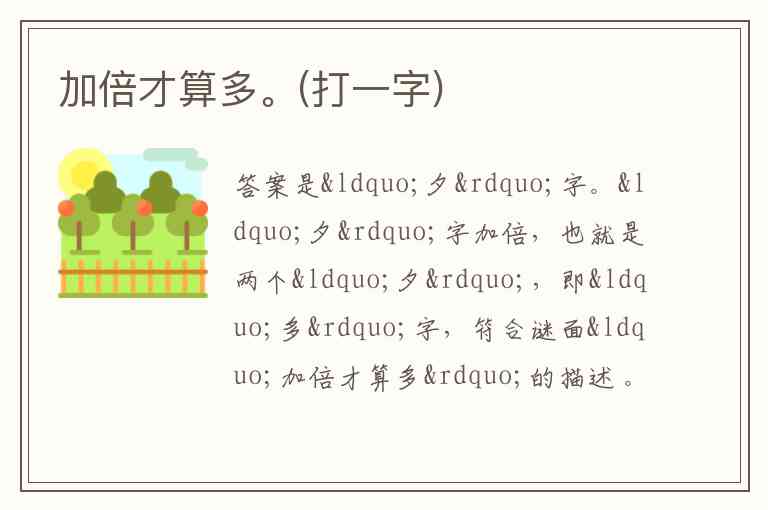 加倍才算多。(打一字)