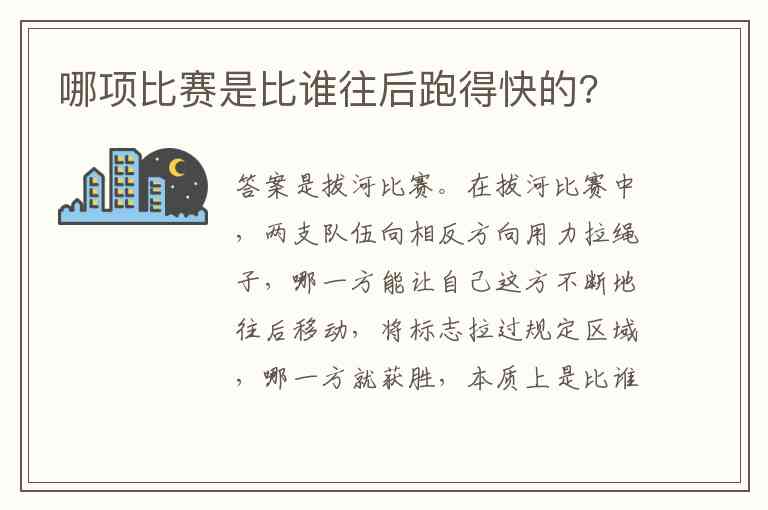 在拔河比赛中,两支队伍向相反方向用力拉绳子,哪一方能让自己这方不断地往后移动,将标志拉过规定区域,哪一方就获胜,本质上是比谁往后跑得快(更有力地往后移动) 。