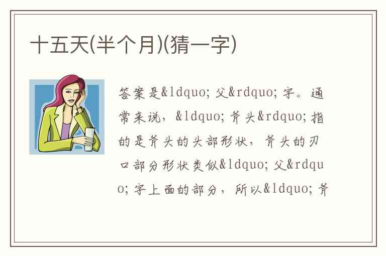 通常来说,“斧头”指的是斧头的头部形状,斧头的刃口部分形状类似“父”字上面的部分,所以“斧头”打一字的谜底为“父” 。