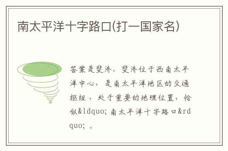 南太平洋十字路口(打一国家名)