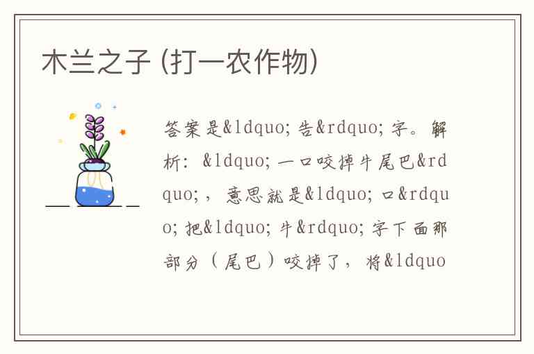 木兰之子 (打一农作物)