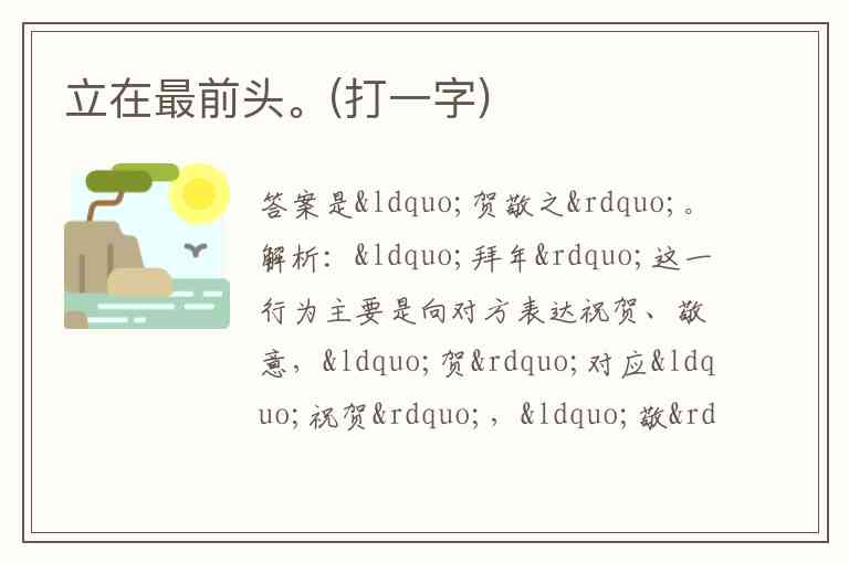 立在最前头。(打一字)