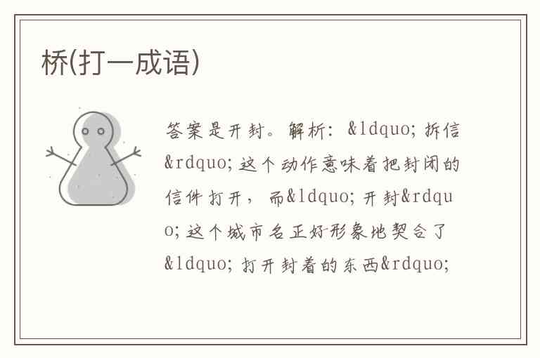 解析:“拆信”这个动作意味着把封闭的信件打开,而“开封”这个城市名正好形象地契合了“打开封着的东西”这一含义 。