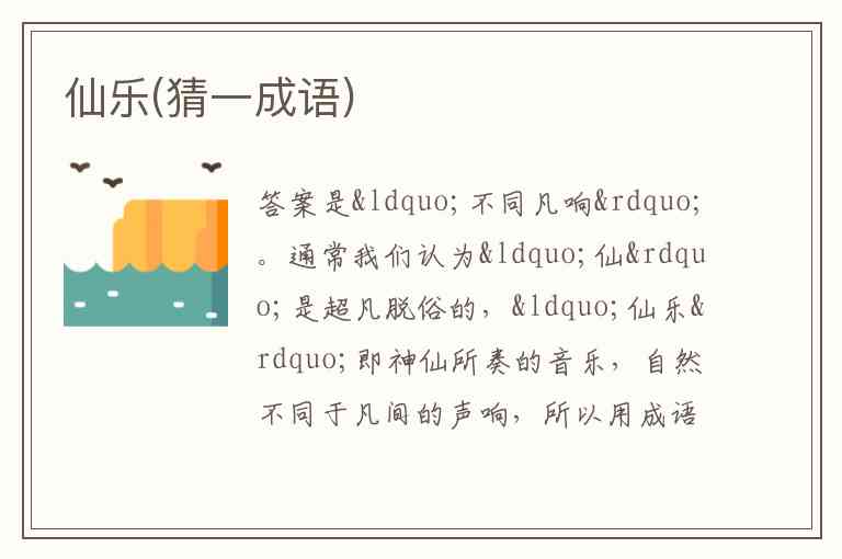 通常我们认为“仙”是超凡脱俗的,“仙乐”即神仙所奏的音乐,自然不同于凡间的声响,所以用成语“不同凡响”来形容十分贴切 。