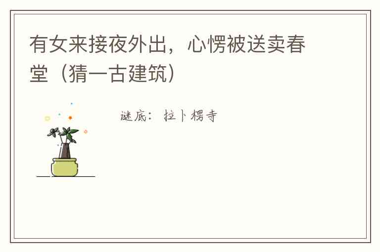有女来接夜外出,心愣被送卖春堂(猜一古建筑)