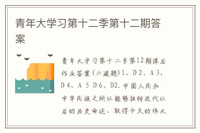 青年大学习第十二季第12期课后作业答案(六道题)