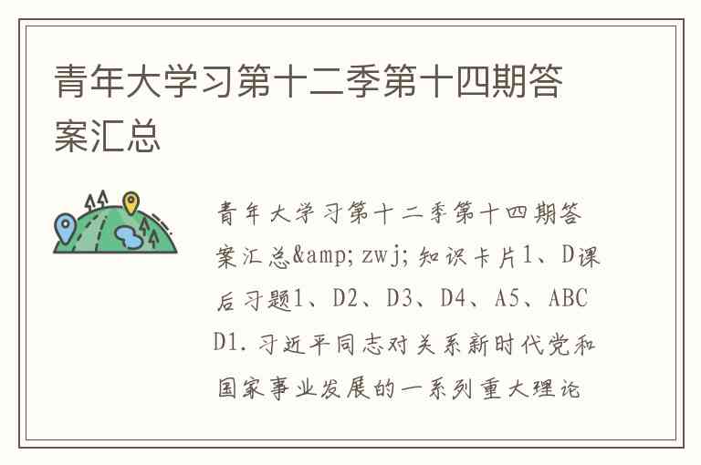 青年大学习第十二季第十四期答案汇总