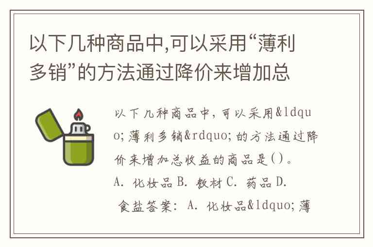 以下几种商品中,可以采用“薄利多销”的方法通过降价来增加总收益的商品是( )。 A. 化妆品 B. 教材 C. 药品 D. 食盐