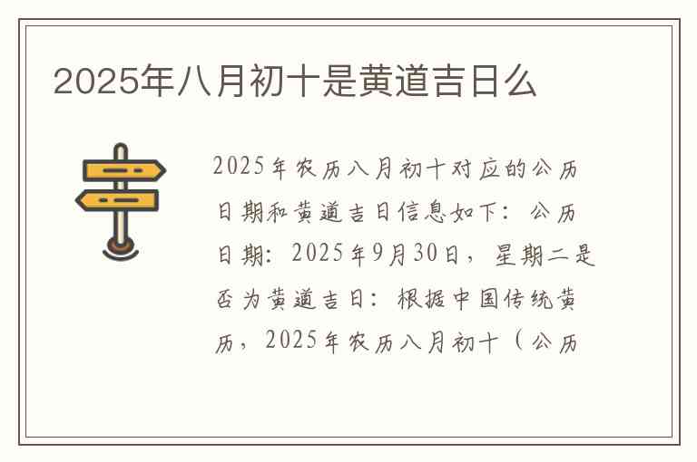 根据中国传统黄历,2025年农历八月初十(公历9月30日)是一个黄道吉日。