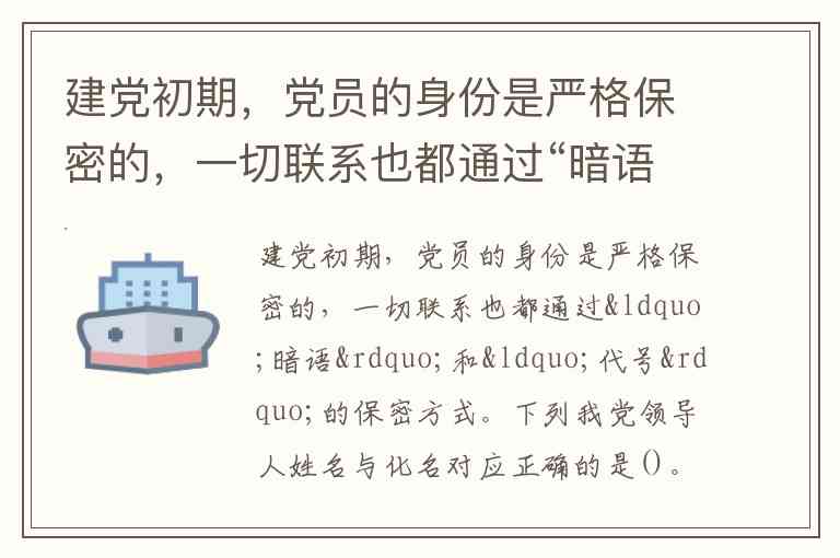 建党初期,党员的身份是严格保密的,一切联系也都通过“暗语”和“代号”的保密方式。下列我党领导人姓名与化名对应正确的是()。