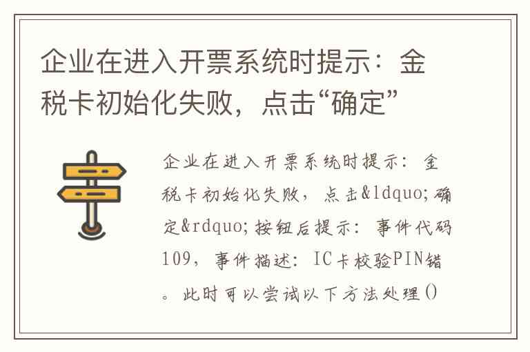 企业在进入开票系统时提示:金税卡初始化失败,点击“确定”按钮后提示:事件代码109,事件描述:IC卡校验PIN错。此时可以尝试以下方法处理()。