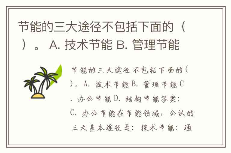 A. 技术节能 B. 管理节能 C. 办公节能 D. 结构节能