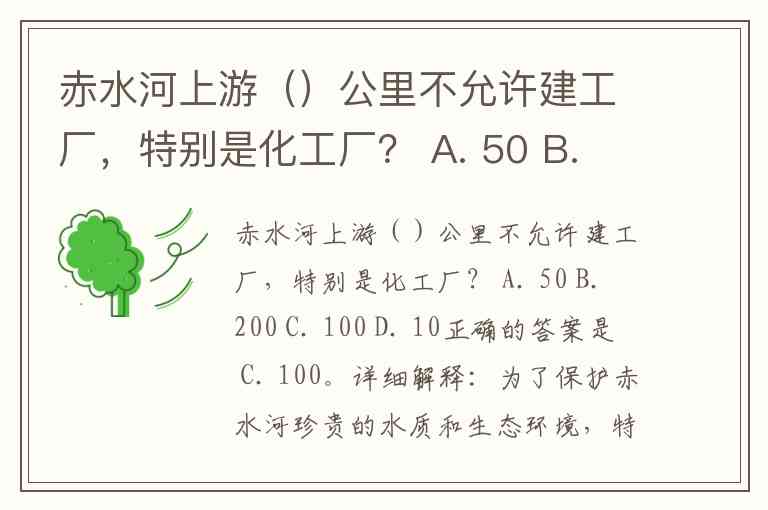在赤水河上游 100 公里范围内,禁止新建造纸、化工等污染严重的工厂项目。