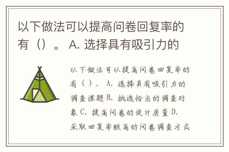 提高问卷回复率的方法通常涉及多个方面。根据你提供的选项,正确答案是: