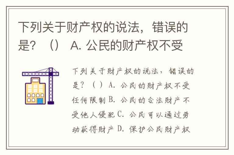 下列关于财产权的说法,错误的是?() A. 公民的财产权不受任何限制 B. 公民的合法财产不受他人侵犯 C. 公民可以通过劳动获得财产 D. 保护公民财产权是经济繁荣的前提