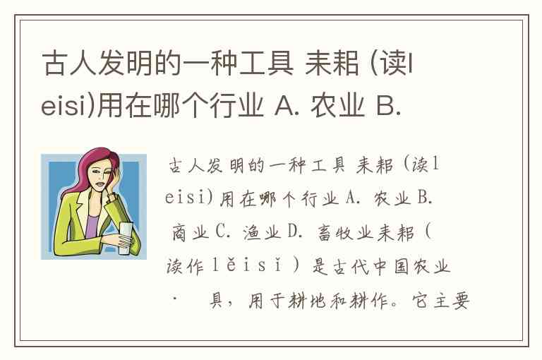 古人发明的一种工具 耒耜 (读leisi)用在哪个行业 A. 农业 B. 商业 C. 渔业 D. 畜牧业