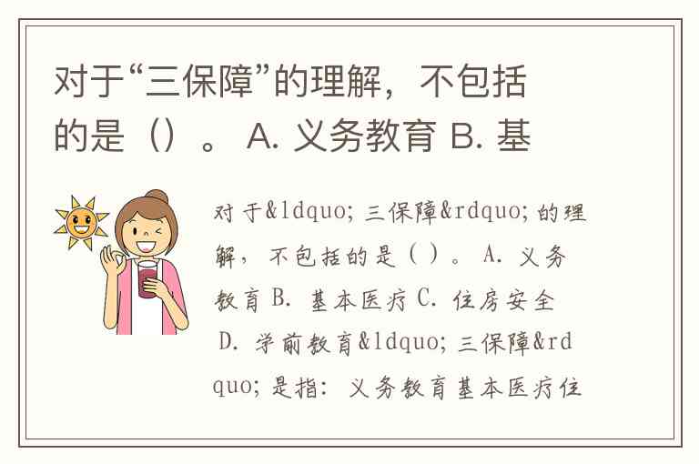 对于“三保障”的理解,不包括的是()。 A. 义务教育 B. 基本医疗 C. 住房安全 D. 学前教育