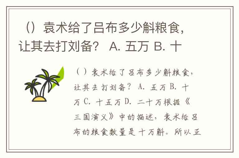 ()袁术给了吕布多少斛粮食,让其去打刘备? A. 五万 B. 十万 C. 十五万 D. 二十万