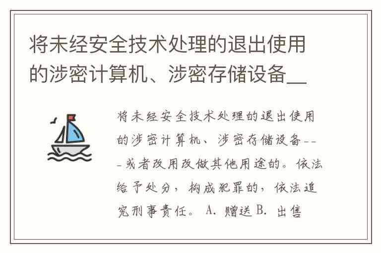 将未经安全技术处理的退出使用的涉密计算机、涉密存储设备___或者改用改做其他用途的。依法给予处分,构成犯罪的,依法追究刑事责任。 A. 赠送 B. 出售 C. 丢弃 D. 以上都是
