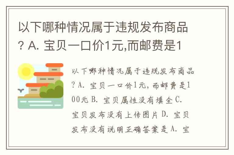 以下哪种情况属于违规发布商品? A. 宝贝一口价1元,而邮费是100元 B. 宝贝属性没有填全 C. 宝贝发布没有上传图片 D. 宝贝发布没有说明