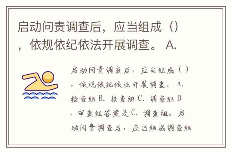 启动问责调查后,应当组成(),依规依纪依法开展调查。 A. 检查组 B. 核查组 C. 调查组 D. 审查组