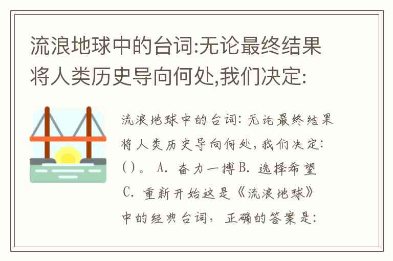 流浪地球中的台词:无论最终结果将人类历史导向何处,我们决定:( )。 A. 奋力一搏 B. 选择希望 C. 重新开始