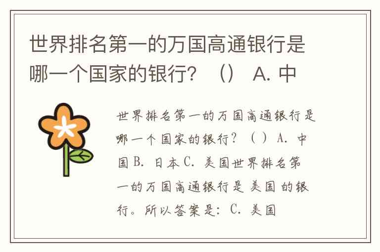 世界排名第一的万国高通银行是哪一个国家的银行?() A. 中国 B. 日本 C. 美国