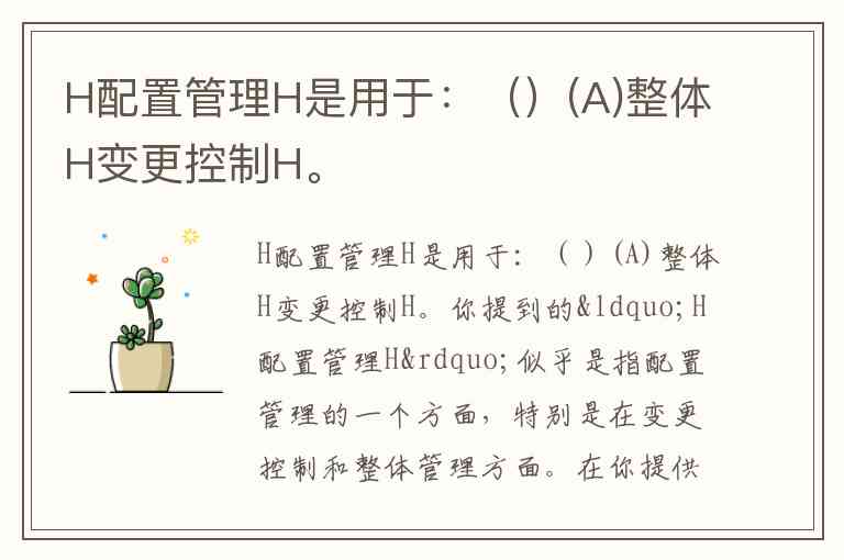 你提到的“H配置管理H”似乎是指配置管理的一个方面,特别是在变更控制和整体管理方面。